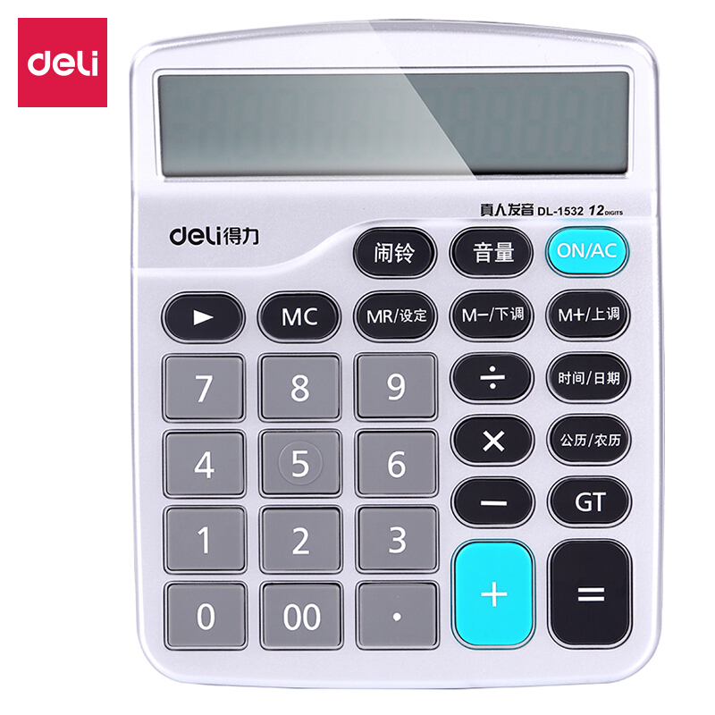 • 得力(deli)1532 12位帶鬧鈴語音辦公桌面白色 計算器